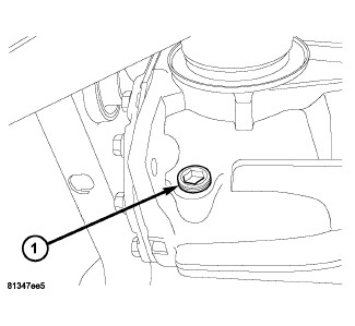 5. Remove fill plug (1) and fill rear axle with 1.4 L (1.5 qts.) Mopar(R) Synthetic Gear AND Axle Lubricant 75W-140 and insure axle is filled to the bottom of the fill hole.
