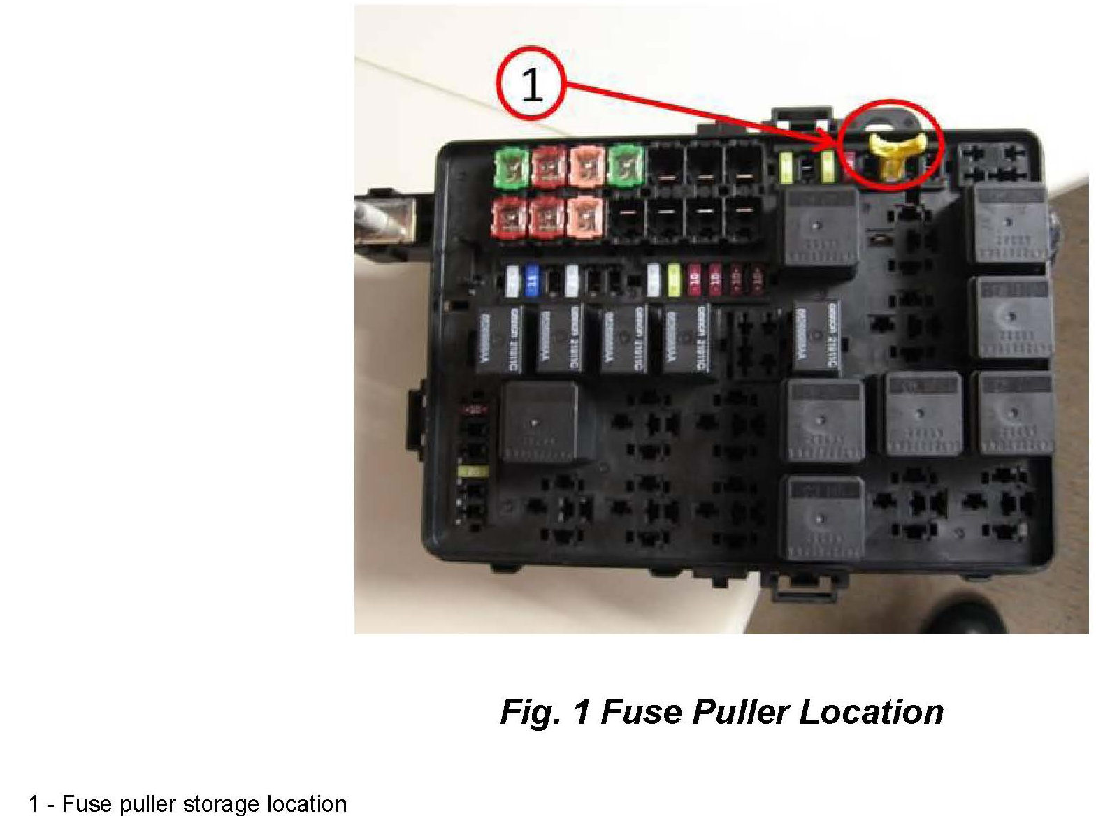 5. Remove fuse 14 (25 Amp) with fuse puller (Fig 1).