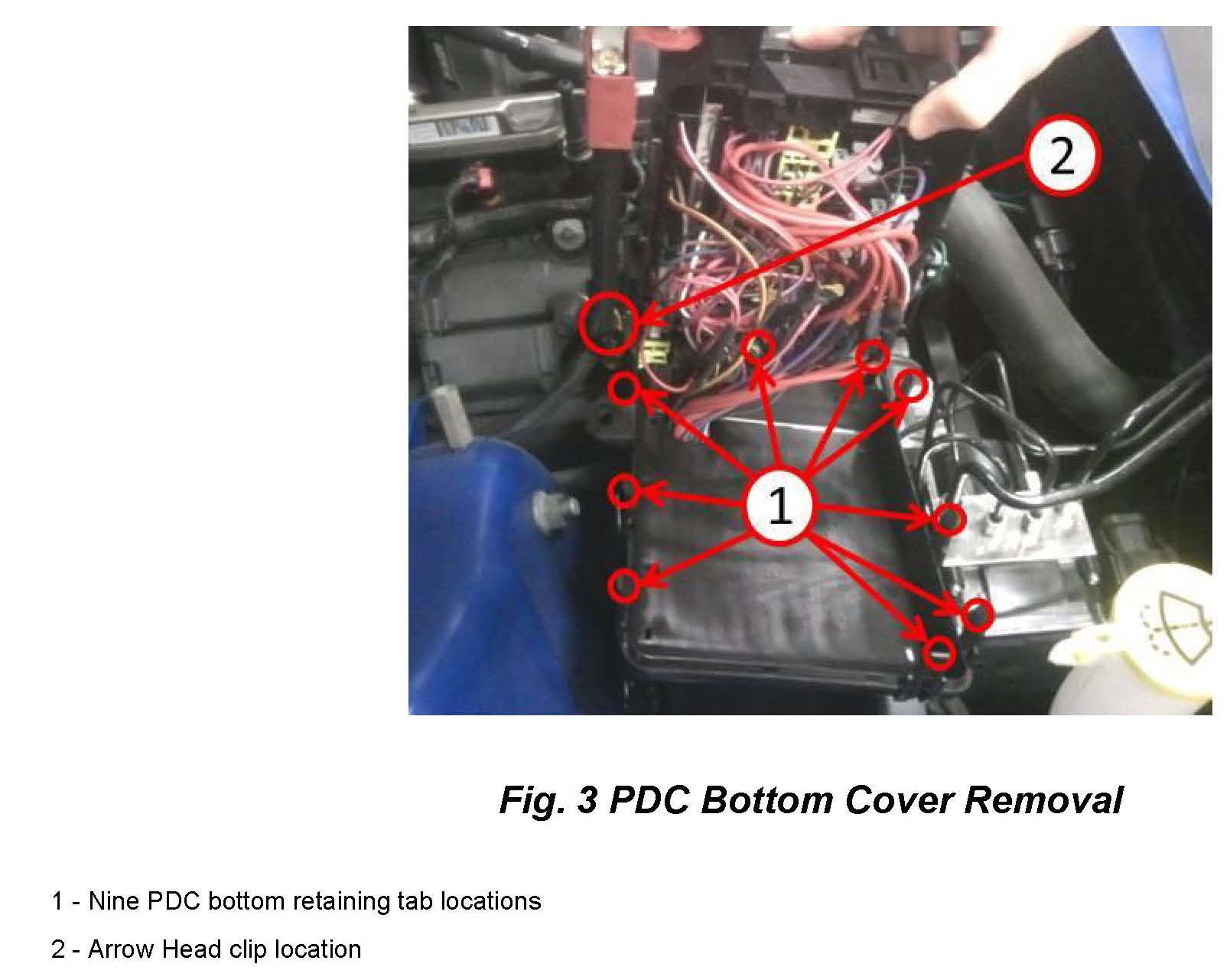 3. Remove PDC top cover (Located in engine compartment) and lay down face up to prevent scratches.