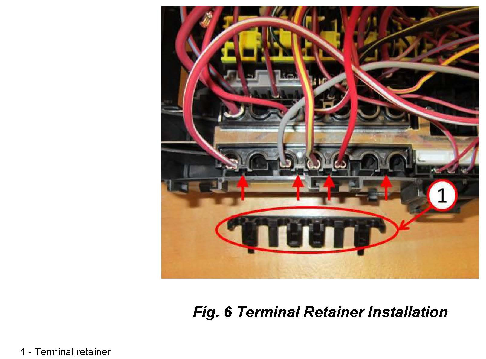 10. From service kit, insert new Black rear terminal retainer back into the correct position (Fig. 6).