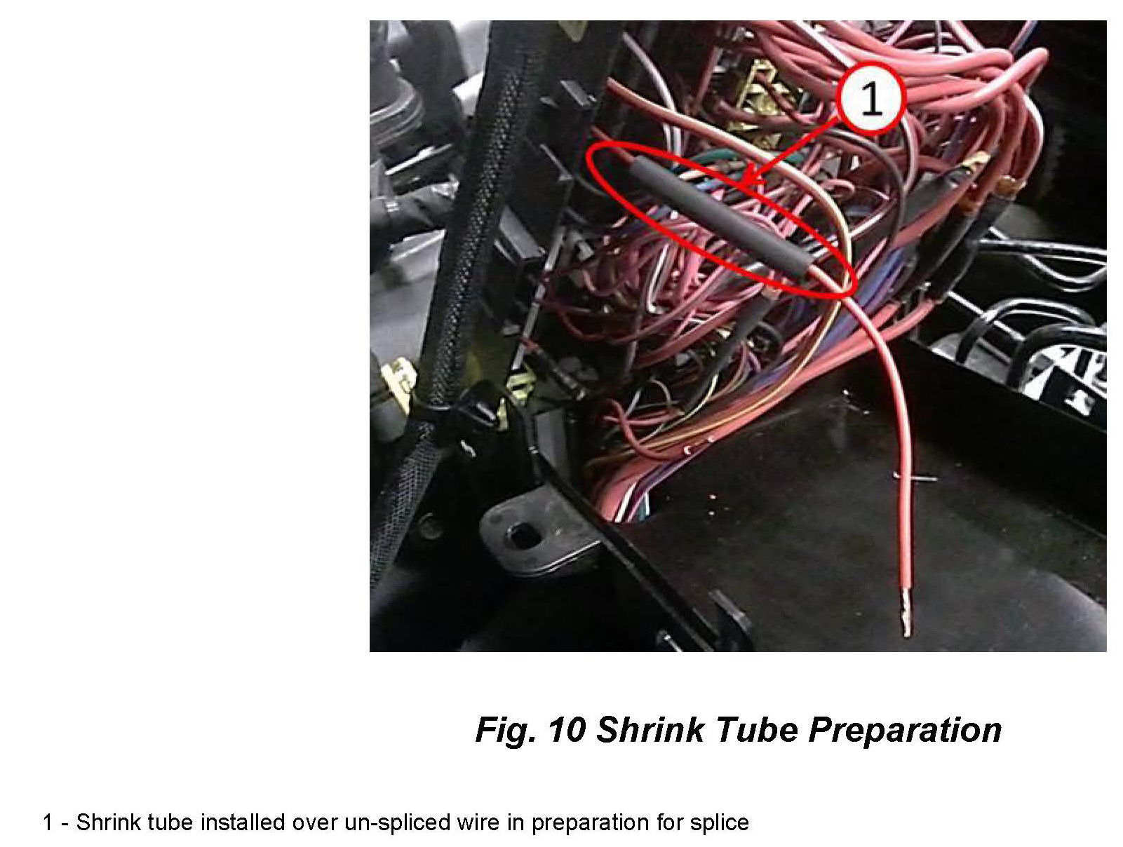 15. From service kit slide the Black 50mm heat shrink tube on wire pigtail, positioned away from splice band (Fig 10).