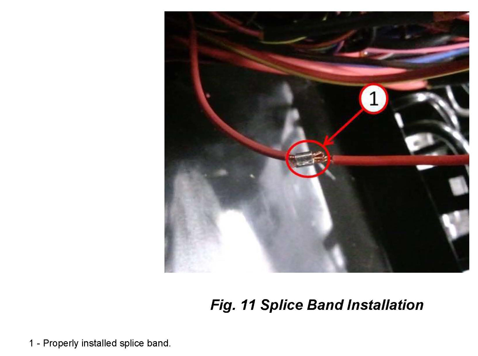 16. Holding the installed pig tail and the remaining portion of the cut circuit together, use splice band from service kit and crimp using "B Style" Crimping Tool from essential tools (Fig. 11).