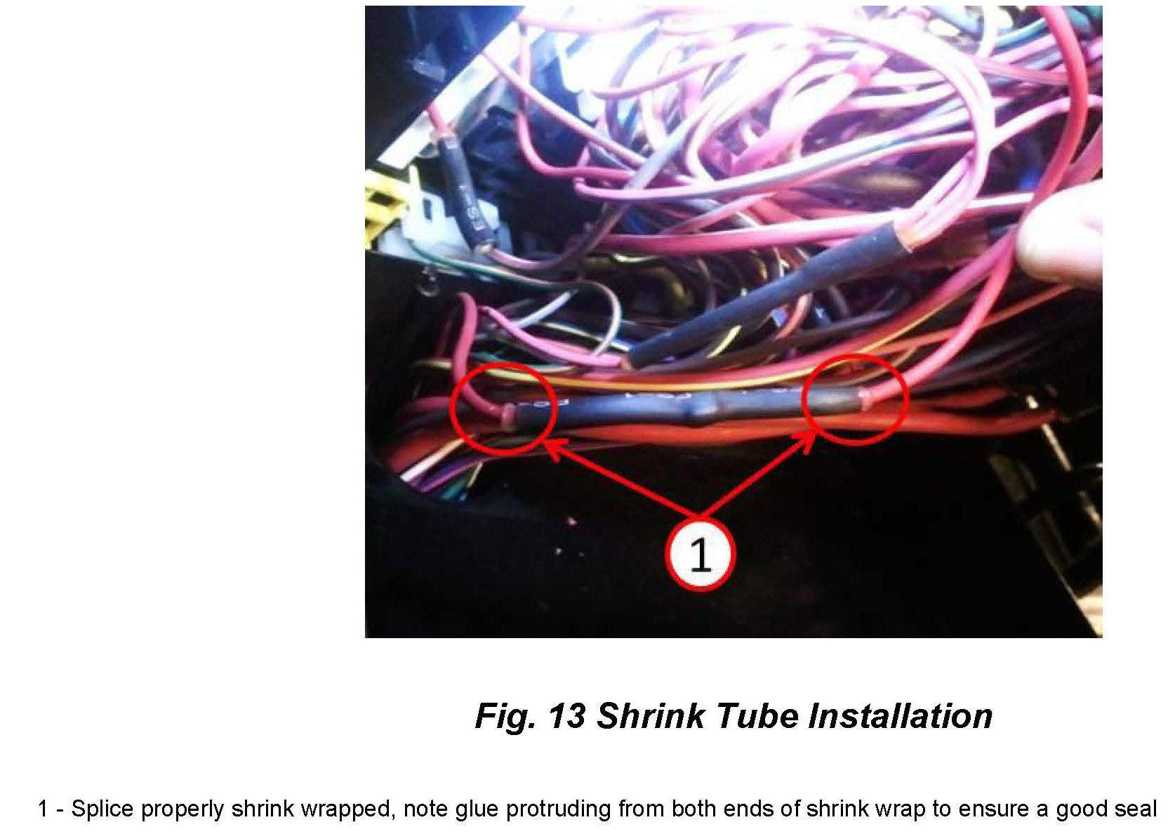 18. Center the heat shrink tube evenly over the splice. Apply heat to shrink the tube and create a seal (Fig 13).