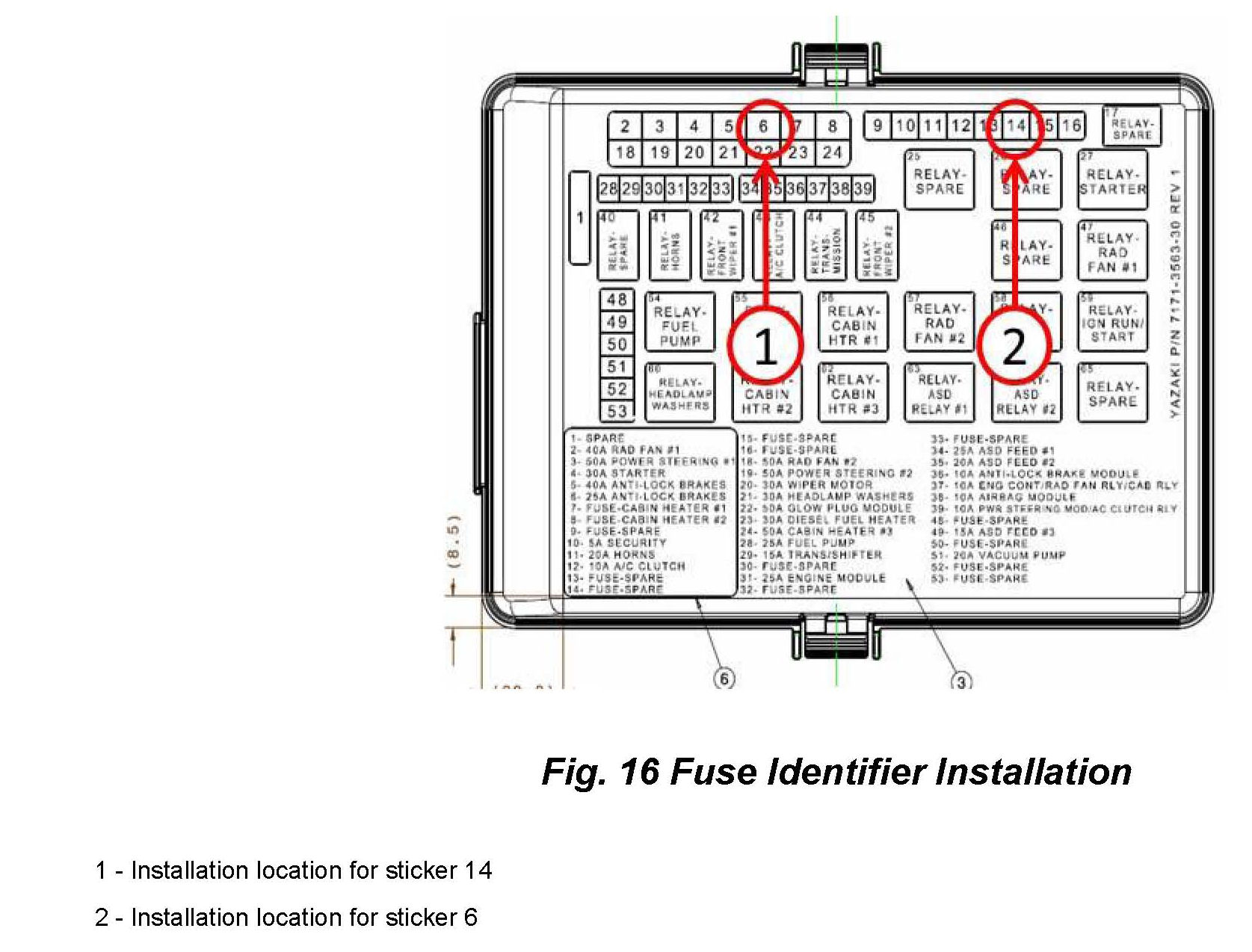 24. Place revised fuse location stickers on PDC box to indicate change of fuse location (Fig. 16).