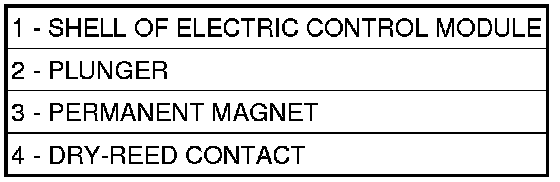 In selector lever positions "P" and "N" the park/neutral contact (4)(Figure 1) is actuated by a cam track which is located on the detent plate. The permanent magnet (3) is moved away from the dry-reed contact (4). The dry-reed contact (4) is opened. The TCM receives an electric signal. The circuit to the starter in the selector lever positions "P" and "N" is closed.
