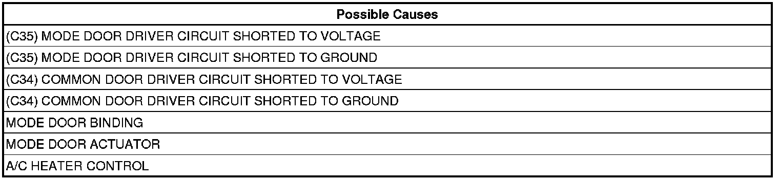 - Repair the (C35) Mode Door Driver circuit for a short to voltage.