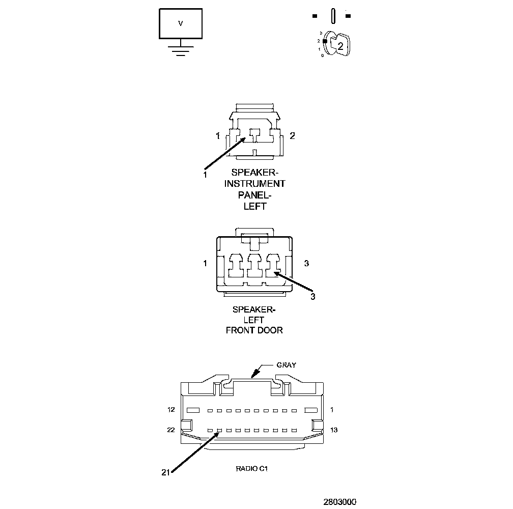 2. CHECK FOR VOLTAGE ON THE (X201) LEFT FRONT SPEAKER (+) CIRCUIT
