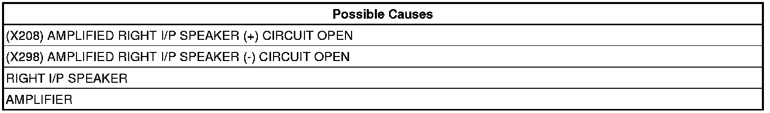 - Repair the (X208) Amplified Right I/P Speaker (+) circuit for an open.