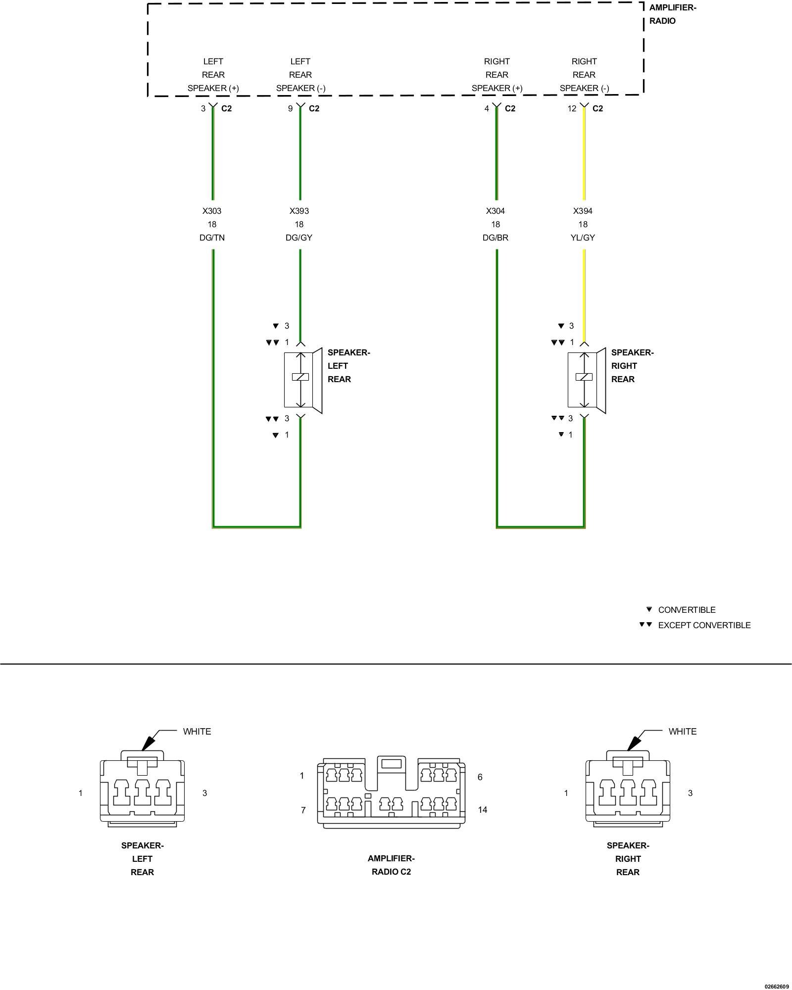 - Repair the (X303) Amplified Left Rear Speaker (+) circuit for an open.