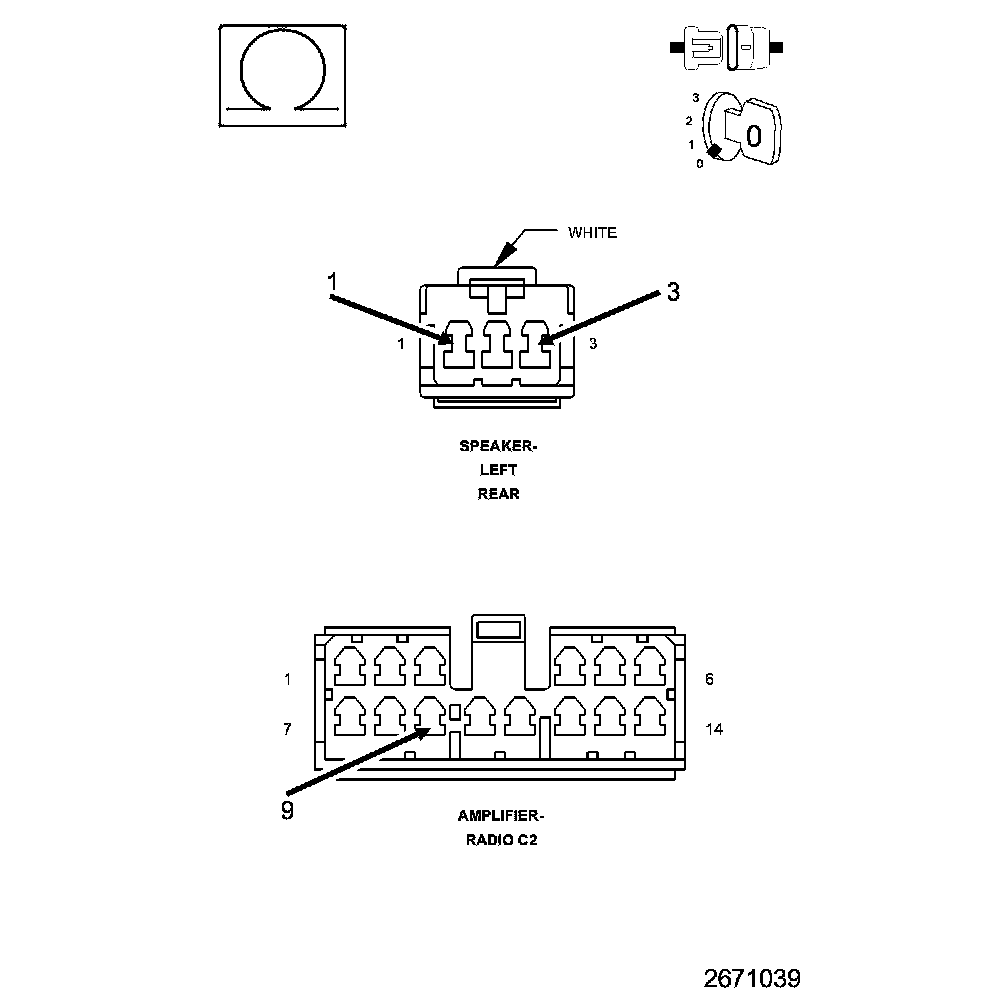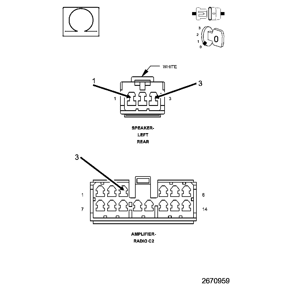 5. With a voltmeter set to read in A/C voltage, measure the voltage of the Amplified Left Rear Speaker circuits in the Left Rear Speaker harness connector.