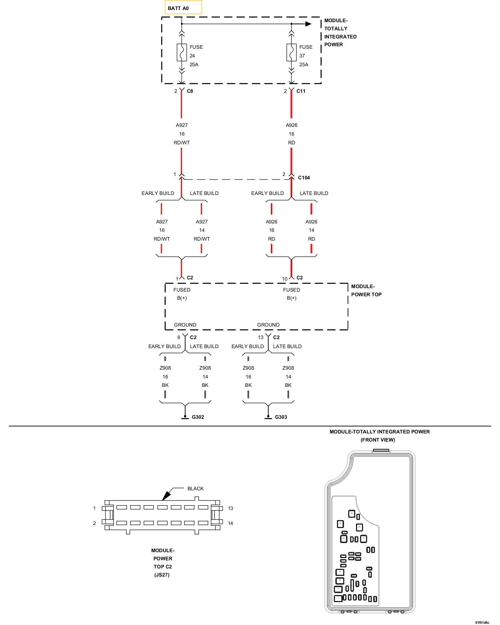 NOTE: If charging system voltage readings are acceptable on both the scan tool and at the (A926) or (A927) Fused (B+) circuit at the Power Top Control Module and no other modules are reporting this DTC then replacing the Power Top Control Module is the most likely course of action.
