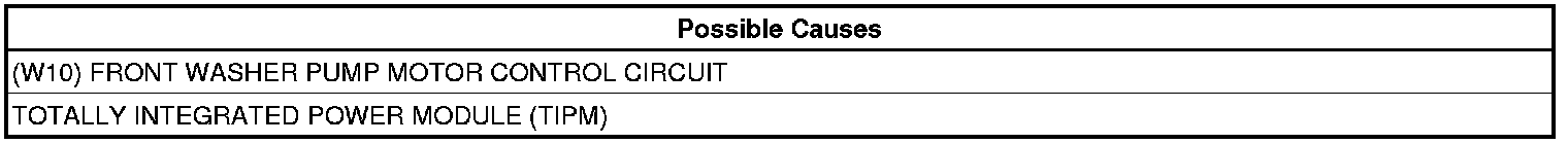- Repair the excessive resistance in the (W10) Front Washer Pump Motor Control circuit.