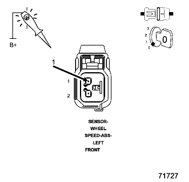 2. Using a 12-volt test light connected to 12-volts, probe the (B8) Left Front WSS Signal circuit.