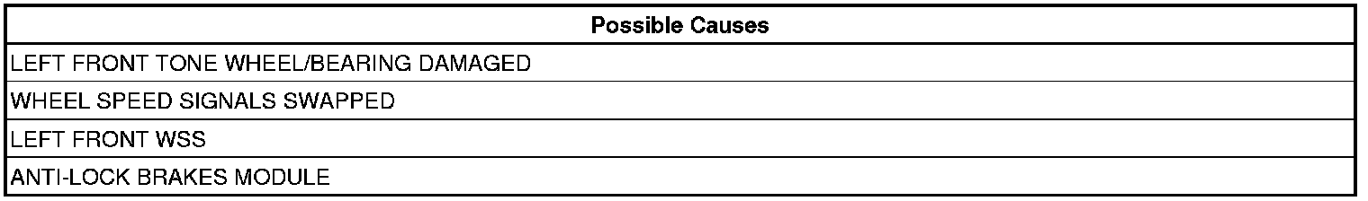 1. With the scan tool, monitor ALL the WSS speeds while an assistant drives the vehicle.