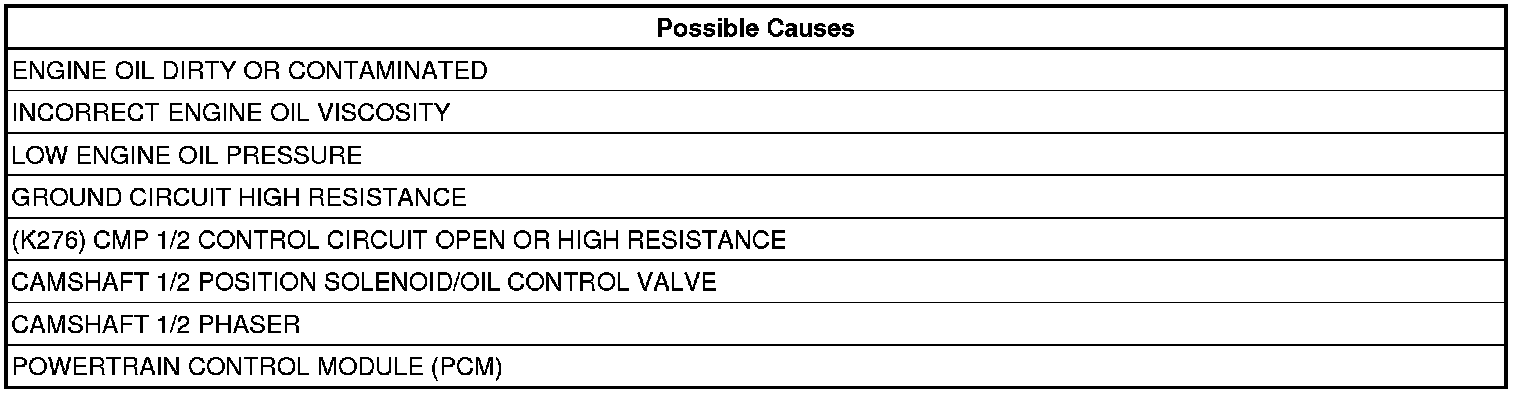 NOTE: If sticking or erratic movement is observed, the Camshaft 1/2 Position Solenoid/Oil Control Valve must be replaced. After replacing the valve, verify that the engine oil has been replaced with the appropriate oil.