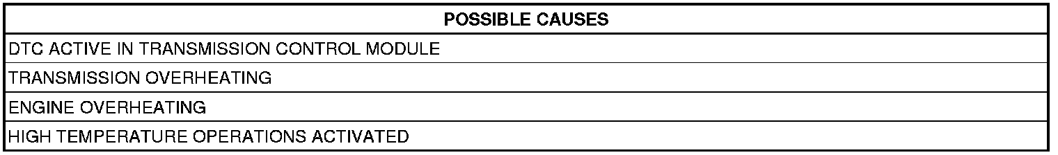 This DTC will set to indicate an overheating transmission or engine cooling system. Extended transmission operation above 115° C (240° F) will reduce the durability of the transmission and should be avoided. Correcting the cooling system operation or installing an additional transmission oil cooler will improve transmission durability, especially under extreme conditions such as city/construction stop and go traffic, trailer towing, aggressive driving in low gear, or operation in mountainous areas.