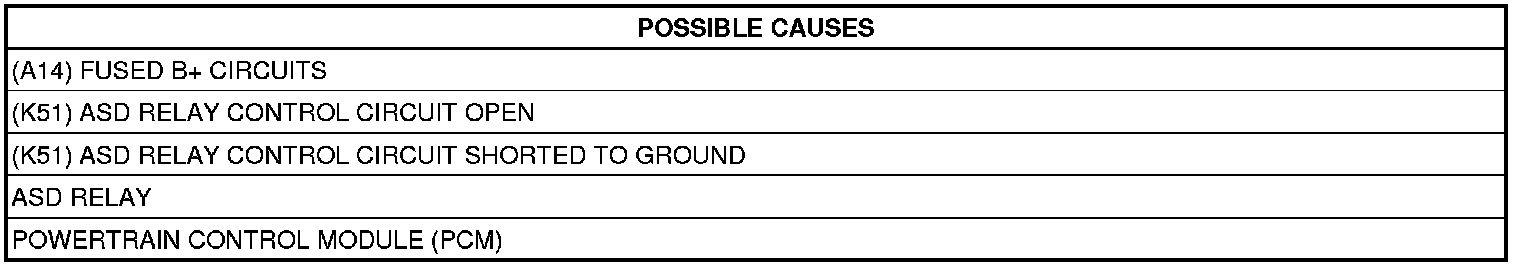 - Repair the (K51) ASD Relay Control circuit for a short to ground.