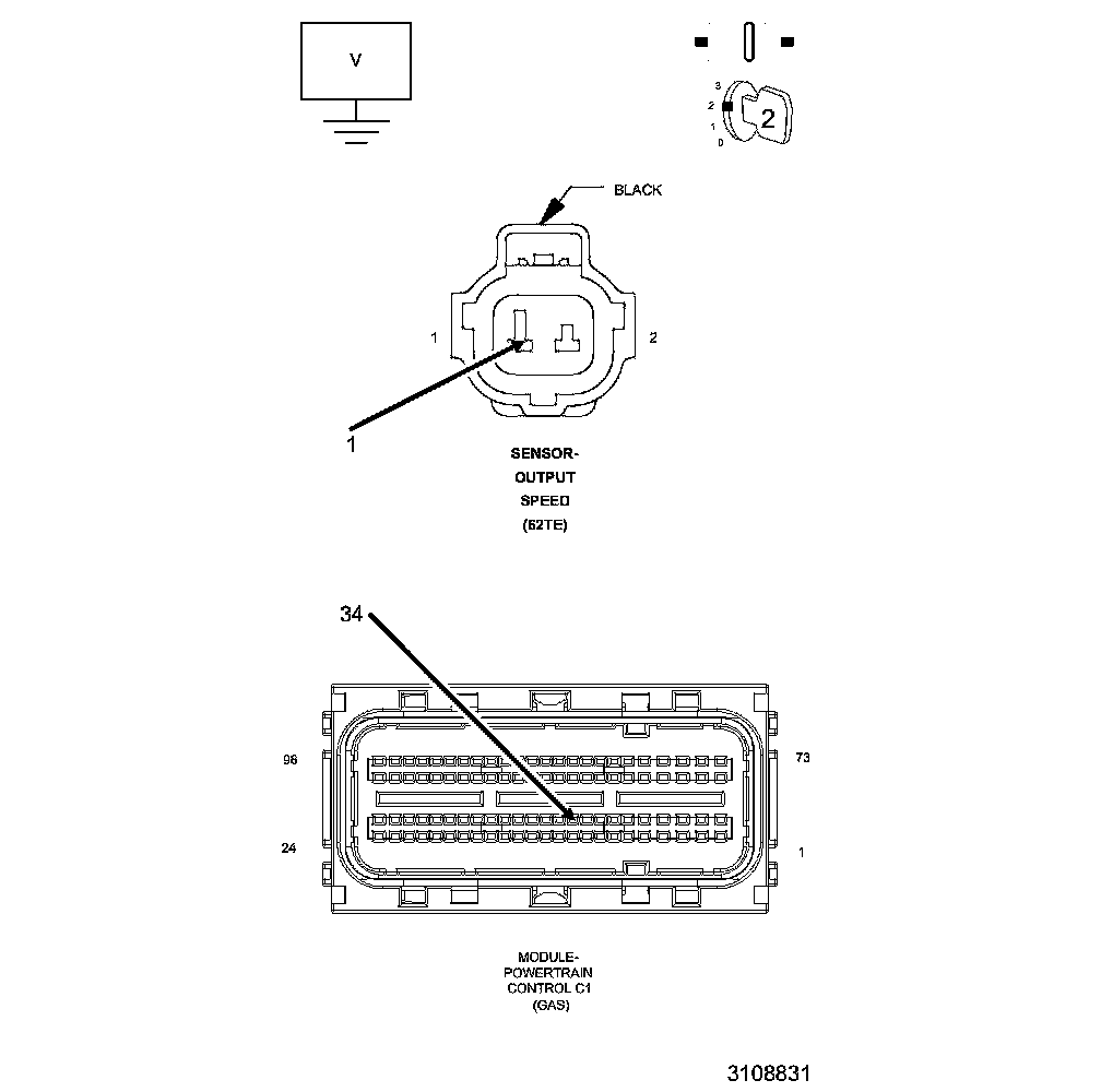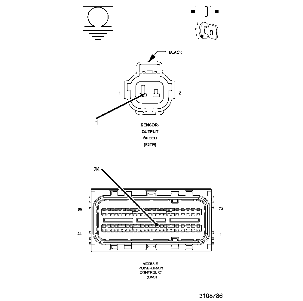 1. Measure the resistance of the Speed Sensor Ground circuit between the appropriate terminal of the PCM C1 harness connector and the Output Speed Sensor harness connector.