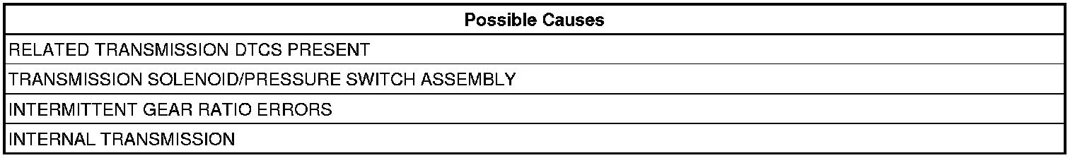 - Refer to appropriate diagnostic procedure in the Transmission category. If any of these DTCs are present, they will cause a gear ratio error. Perform the test for Loss of Prime first if it is present.