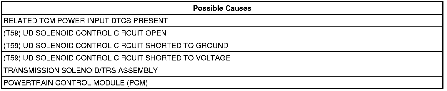 - Repair the (T59) UD Solenoid Control circuit for a short to voltage.