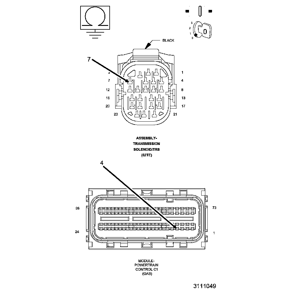 Always perform the 62TE Pre-Diagnostic Troubleshooting procedure before proceeding. PCM Pre-Diagnostic Troubleshooting Procedure