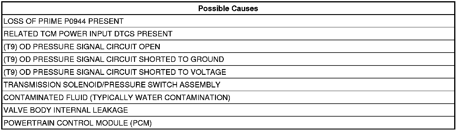 - Repair the (T9) OD Pressure Signal circuit for a short to voltage.