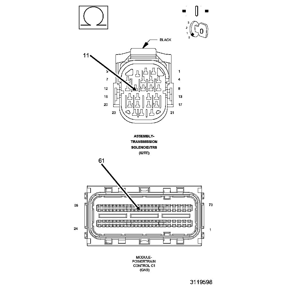 Always perform the 62TE Pre-Diagnostic Troubleshooting procedure before proceeding. PCM Pre-Diagnostic Troubleshooting Procedure