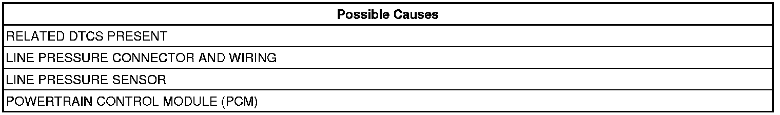 The Powertrain Control Module (PCM) continuously monitors Actual Line Pressure and compares it to Desired Line Pressure. If the Actual Line Pressure reading is more than 172.4 kPa (25 psi) higher than the Desired Line Pressure, but is less than the highest Line Pressure ever used in the current gear, the DTC sets.