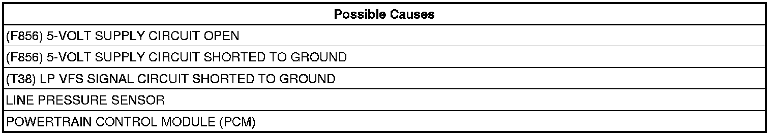This DTC will set when the monitored Line Pressure Sensor voltage is less than or equal to 0.35 of a volt for 0.18 of a second.