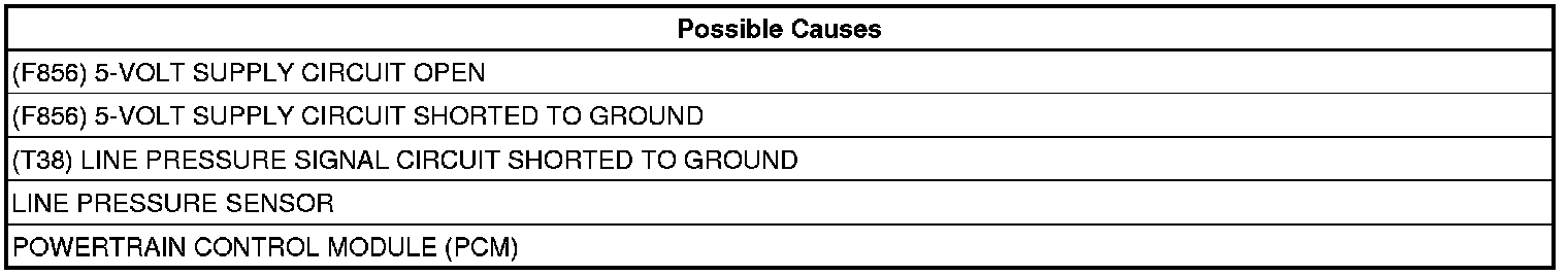 This DTC will set when the monitored Line Pressure Sensor voltage is less than or equal to 0.35 of a volt for 0.18 of a second.