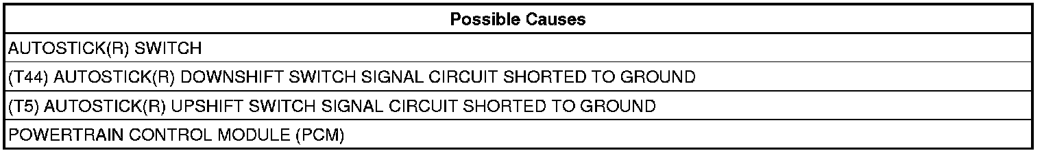 - Repair the (T44) AutoStick(R) Downshift Switch Signal circuit for a short to ground.