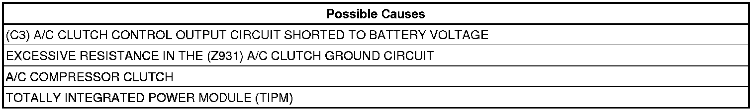 3. (C3) A/C CLUTCH CONTROL OUTPUT CIRCUIT SHORTED TO BATTERY VOLTAGE