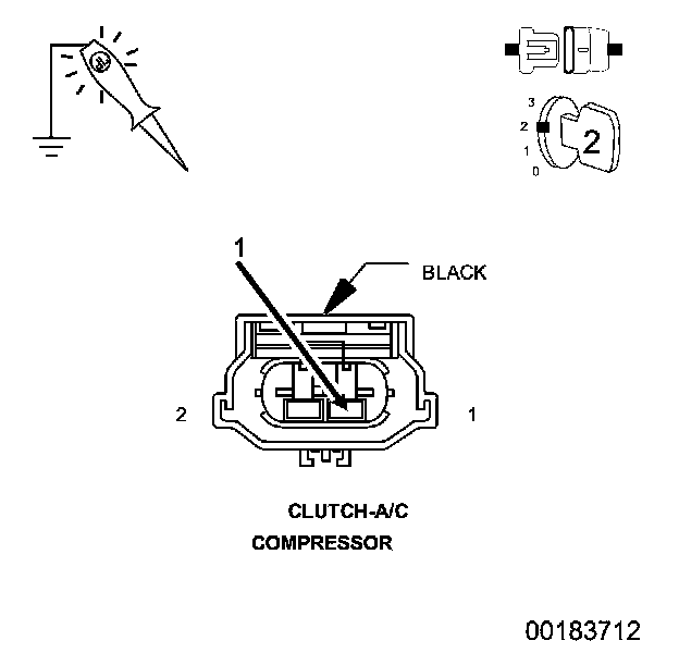 3. Using a 12-volt test light connected to ground, check the (C3) A/C Clutch Control Output circuit at the A/C Compressor Clutch harness connector.
