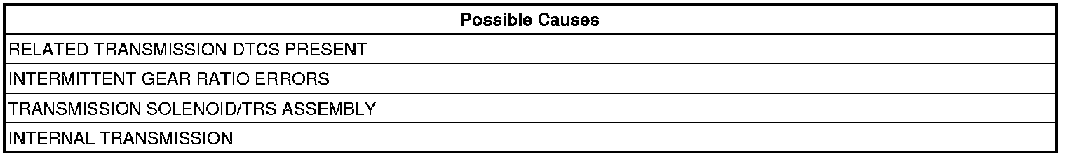 - Refer to appropriate diagnostic procedure in the Transmission category. If any of these DTCs are present, they will cause a gear ratio error. Perform the test for Loss of Prime first if it is present.