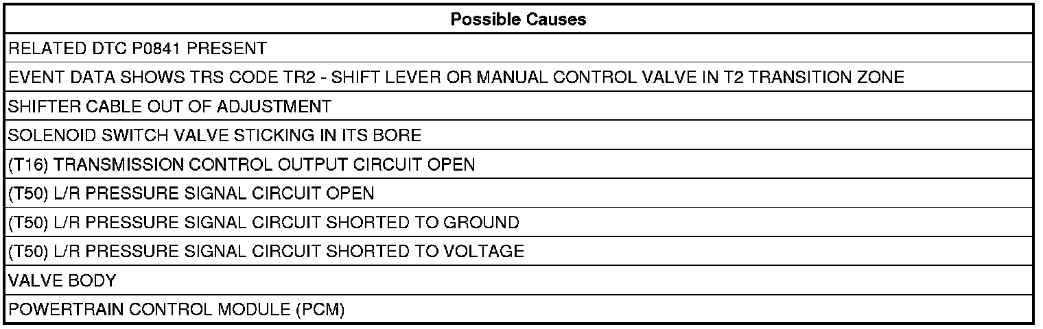- This indicates the shift lever and the manual control valve were in the T2 transition zone between Neutral and OD. Check the shifter cable for: proper adjustment, binding, friction, improper routing, or the shifter was moved in transit. Repair as necessary.