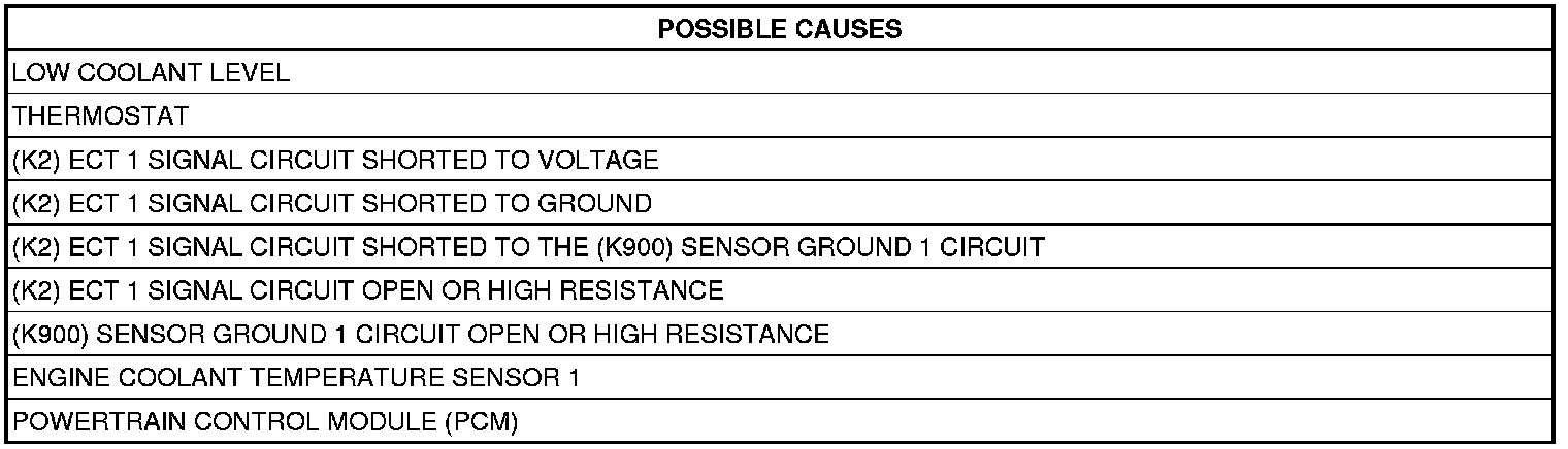 - Repair the (K2) ECT Signal circuit for a short to the (K900) Sensor Ground circuit.