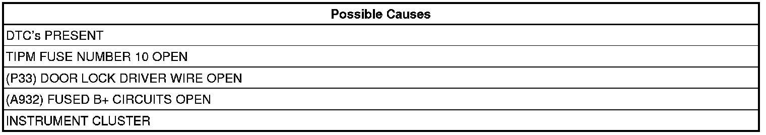 - Repair the (P33) Door Lock Driver wire for an open. Check the other Driver circuits for opens also.