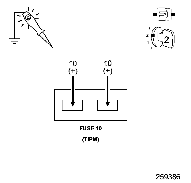 1. Using a test light connected to ground, check both sides of the TIPM fuse number 10.