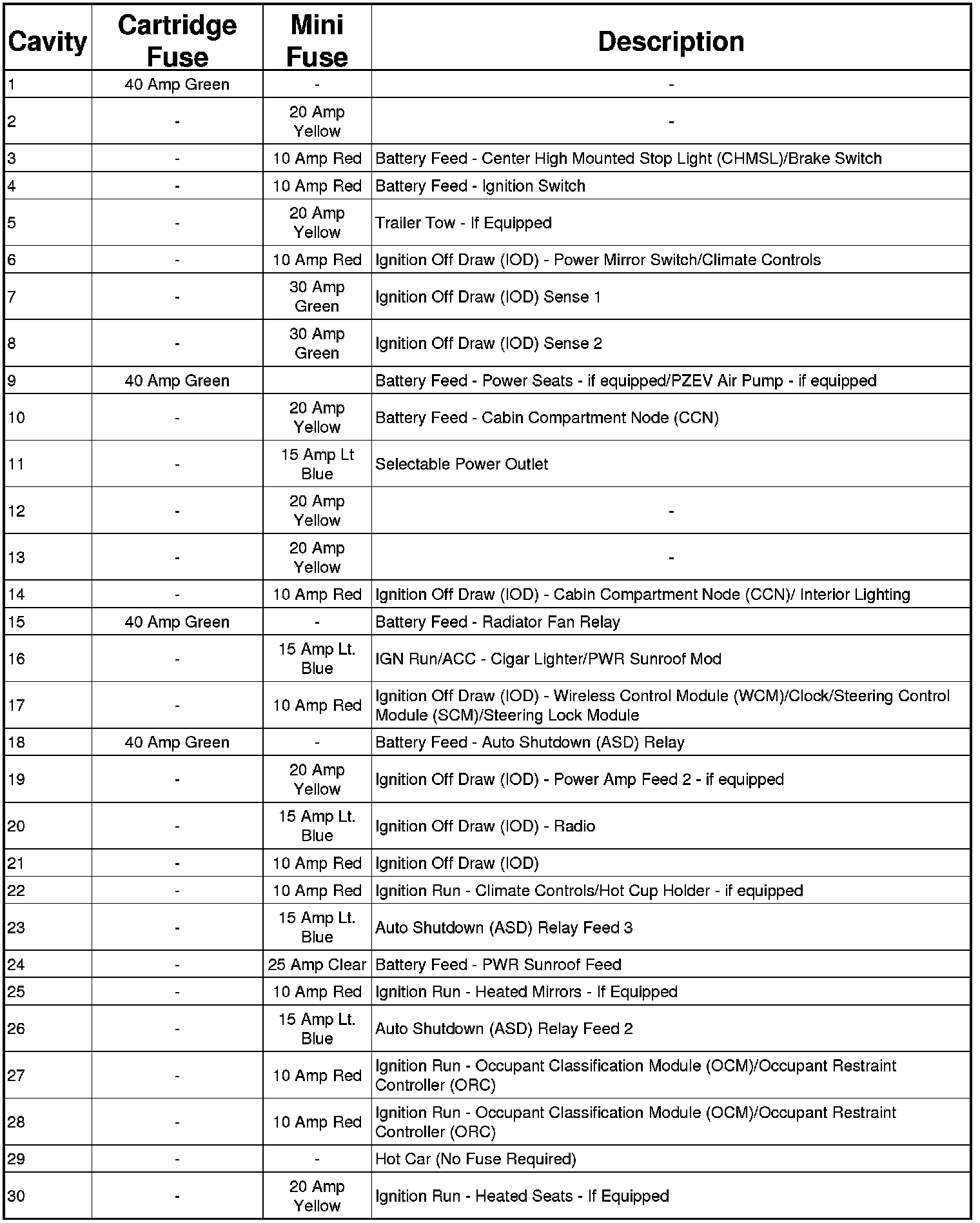 A Totally Integrated Power Module is located in the engine compartment near the air cleaner assembly. This center contains cartridge fuses and mini fuses.