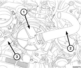 The air injection pump (1) is located in the rear of the engine compartment on partial zero emission vehicles (PZEV). The pump is operated by an internal electrical motor and is mounted to a bracket by rubber isolators. An inlet air hose (3) and outlet connecting tube (2) are attached to the air pump. The air pump relay is also located on the pump mounting bracket.