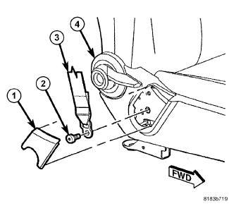 6. Install the side shield/cover (1) to the seat belt anchor (3).