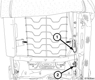7. Engage rear entry cable (2) and bracket (1).