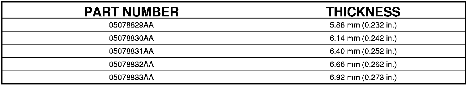 OUTPUT GEAR BEARING SHIM CHART