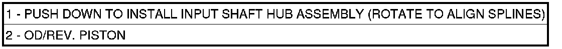 6. Install the input hub/shaft assembly. (rotate to align splines) (1) to the OD/Reverse piston/clutch retainer assembly (2).