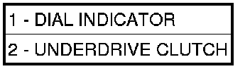 23. Using moderate pressure, press down and hold (near indicator) the UD clutch pack (2) with screwdriver or suitable tool and zero dial the indicator. When releasing pressure on clutch pack, indicator reading should advance (0.005-0.010 in.).