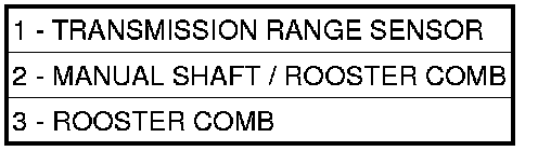 6. Remove Manual Shaft/Rooster Comb (3) and Transmission Range Sensor (1).