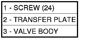 9. Remove Valve Body (3) to Transfer Plate (2) screws (1).
