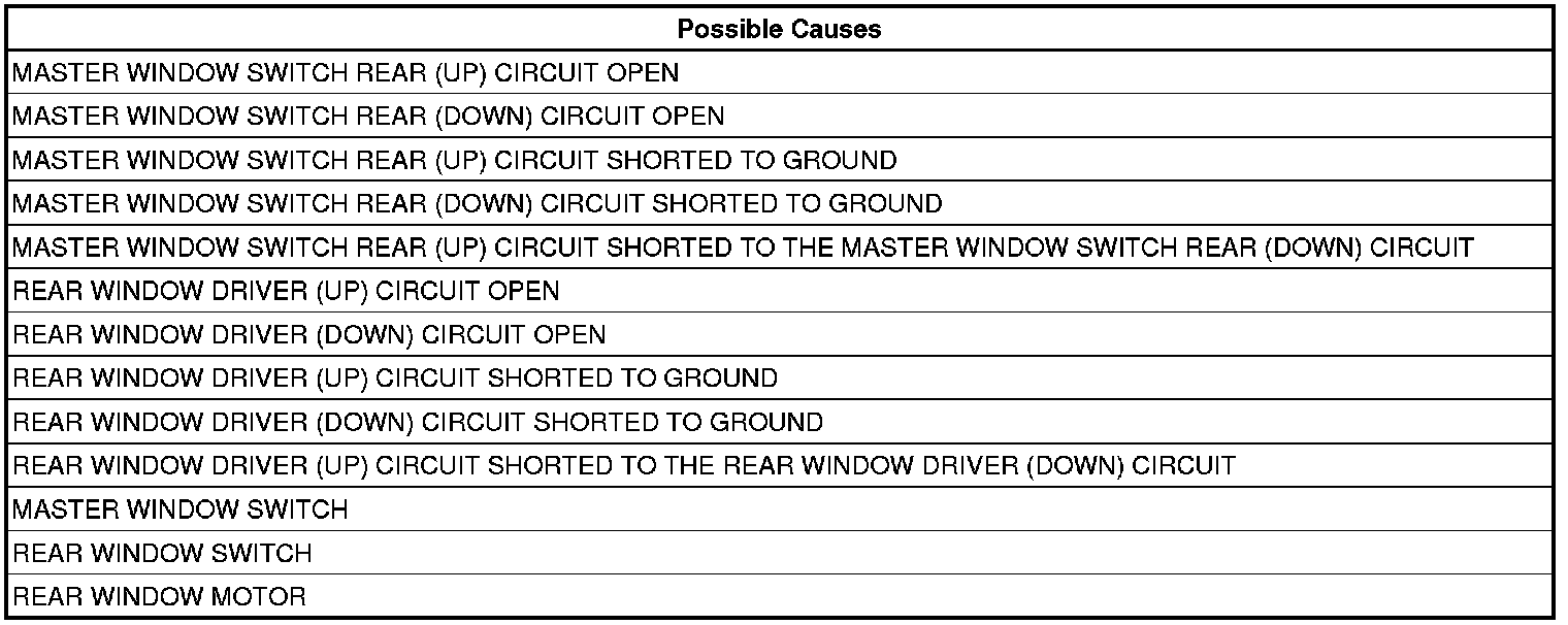 13. REAR WINDOW DRIVER (UP) CIRCUIT SHORTED TO THE REAR WINDOW DRIVER (DOWN) CIRCUIT