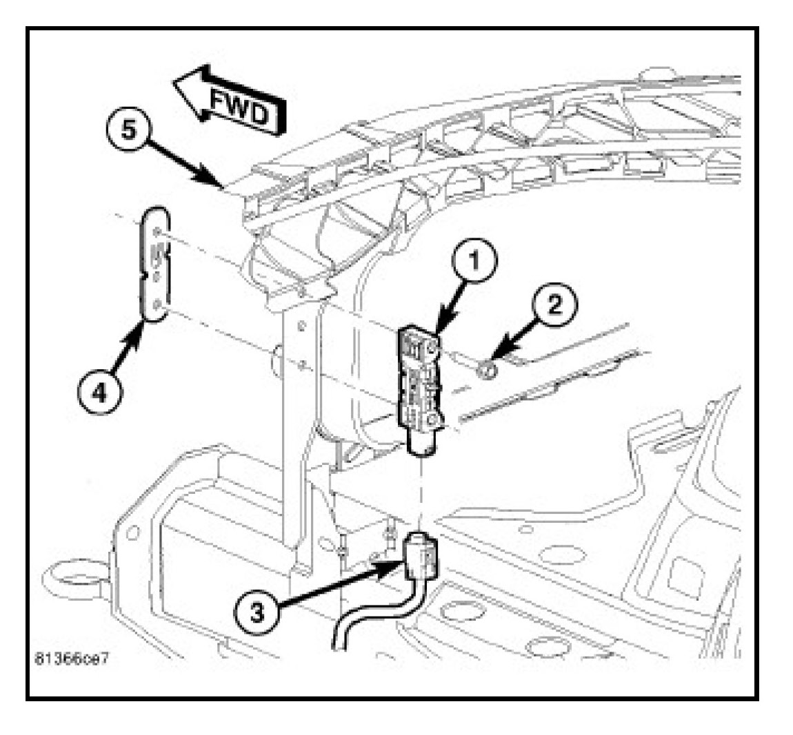 5. Remove the quarter panel mounted side impact sensor (4).