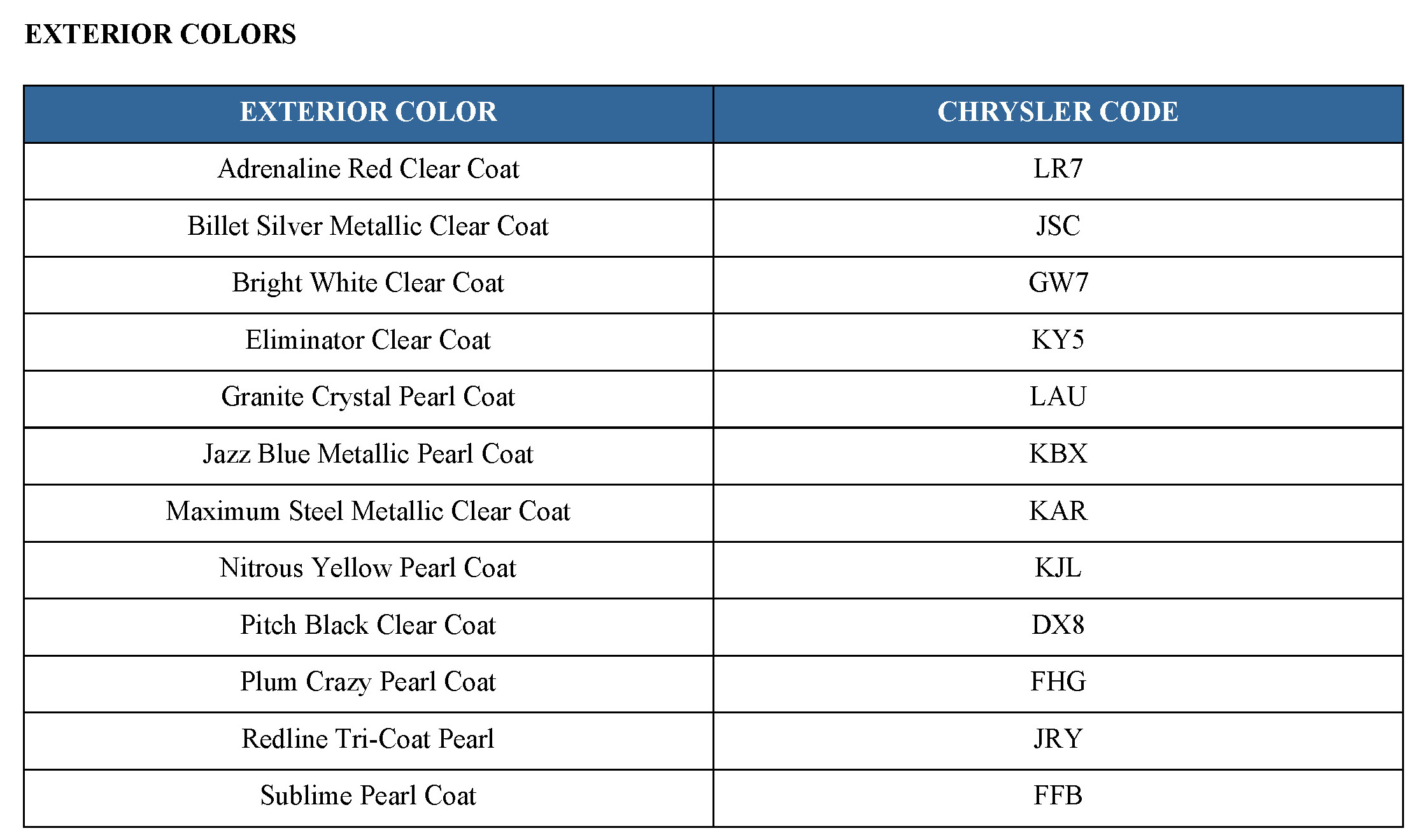 EXTERIOR COLORS